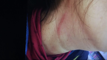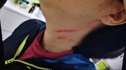事后,罗小姐的母亲张女士很快打电话报了警。张女士今年52岁,女儿提到母亲的伤势非常心疼,“我母亲头部肿起,脖子上有三处抓痕(有出血),手指也被抓伤,之后几天右侧腰部和右膝都感觉疼痛。”