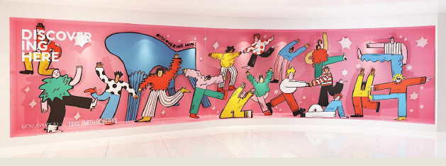 此外,4位国际插画家联合打造艺术橱窗展览《F ashion Street 》,则为卓悦中心带来了更加色彩斑斓的视觉体验:Tess Smith Roberts(英国)明快的色彩与童趣的风格,充满治愈感;Lisa Tegtmeier(德国)以抽象的几何形人物,简单却引人注目;Jisu Choi(韩国)通过平面中的立体描绘,展现出卓悦中心奇幻丰富的体验;Decue Wu(美国)则以“城市日记”的理念,充分展现出“城市T台”的时尚气质。