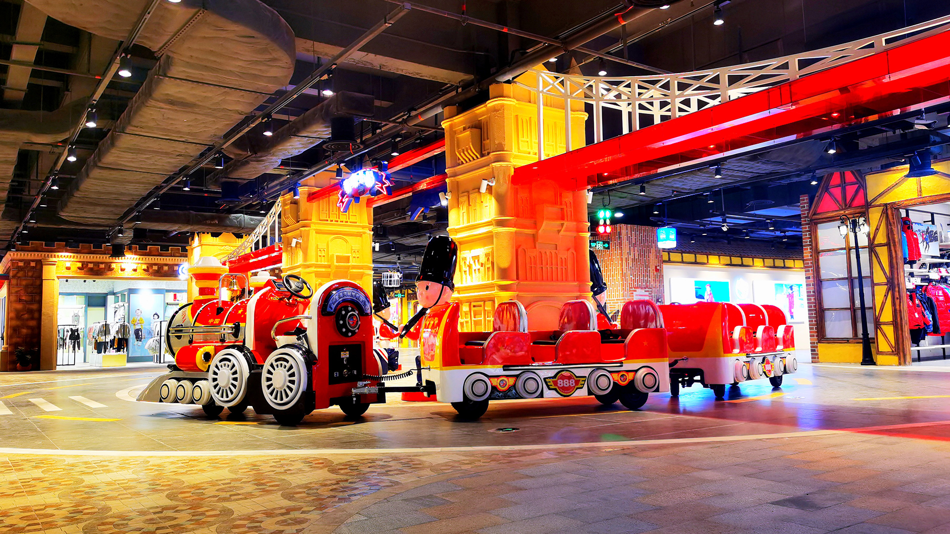 英伦小镇——六楼的英伦风情小镇,多家时尚儿童服饰让潮妈们一站式买到孩子日常生活的所有;儿童教育、娱乐、餐饮一样也不缺,是溜娃儿的好地方。