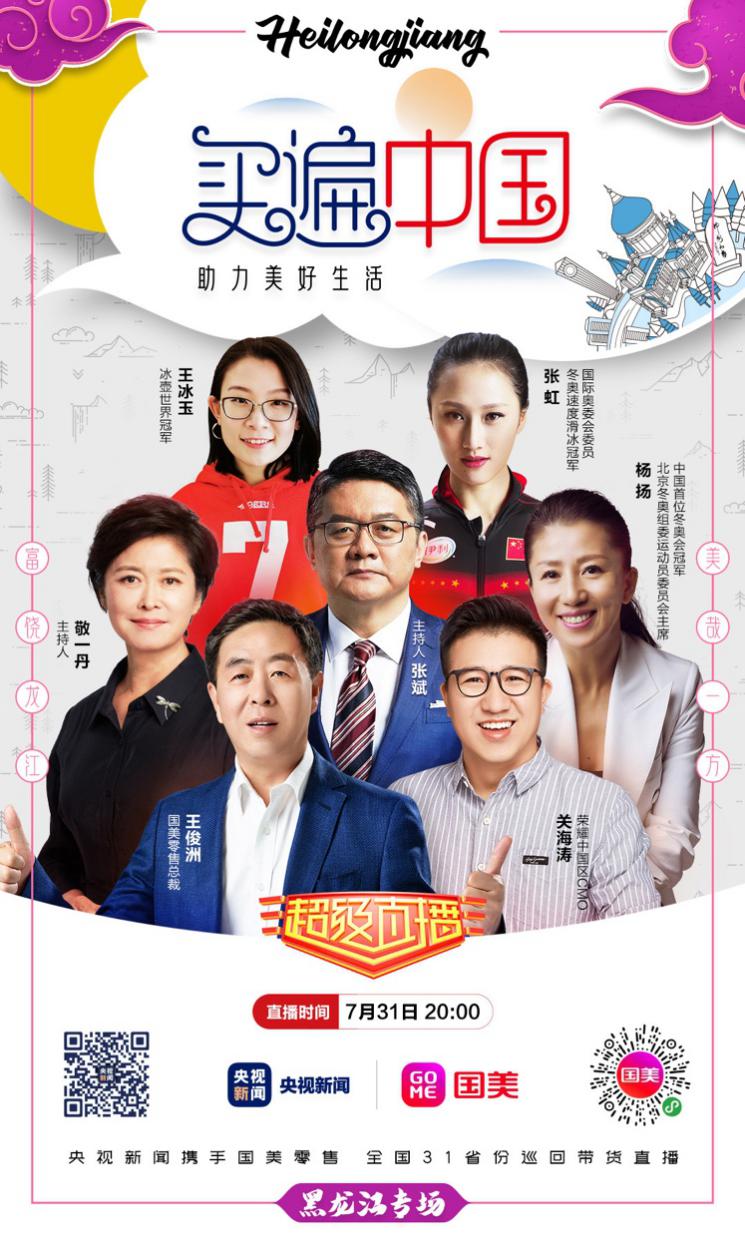 7月31日,“买遍中国·助力美好生活——央视新闻&国美零售全国31省份巡回带货直播”第二站聚焦黑龙江,回眸东北这片热土。本次直播延续了国美一贯的开放与亲民风格。央视体育主播张斌将与三位世界冠军——中国首位冬奥会冠军杨扬、冬奥速滑冠军张虹、冰壶世界冠军王冰玉及央视主持人敬一丹同台带货,除了推荐国美热销的数十款家电及消费电子产品,更带来了众多黑龙江特色产品。