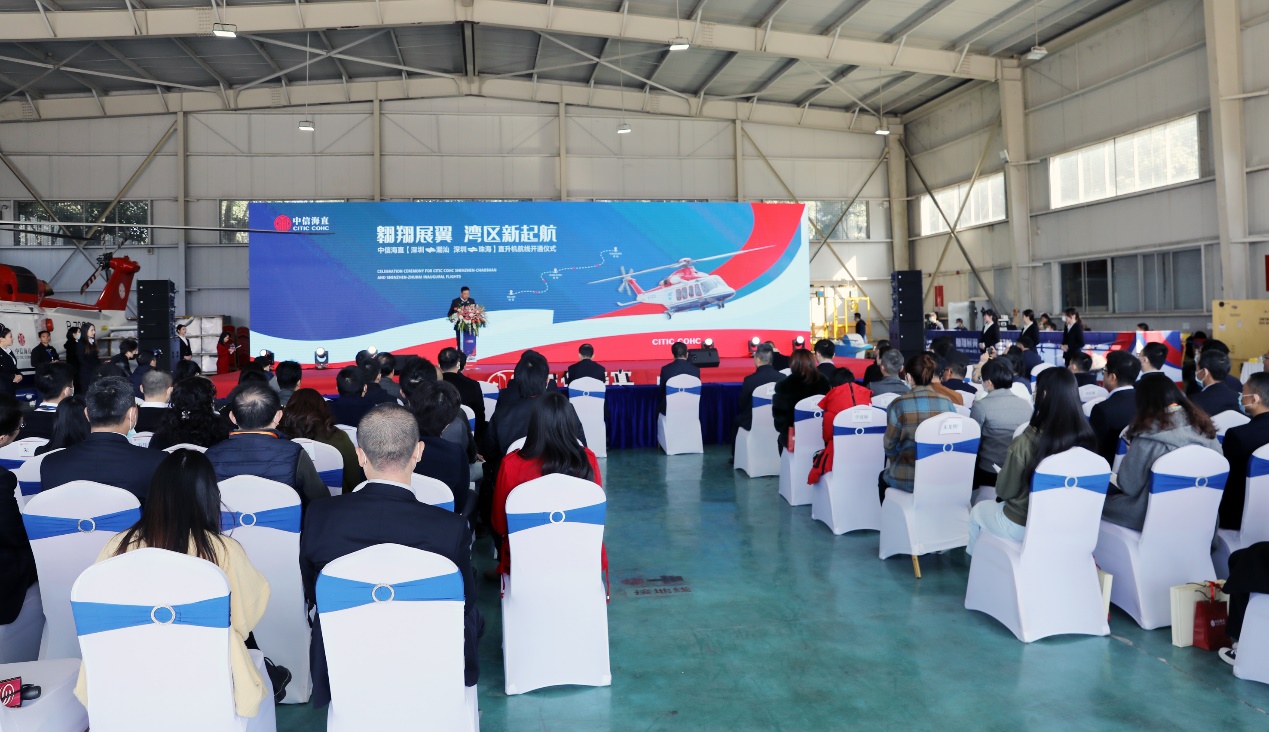 中信海直总经理王鹏在致辞中表示,此次开通直升机航线是向粤港澳大湾区、深圳先行示范区建设献上一份新年贺礼。他指出,中信海直深入贯彻习近平总书记在深圳经济特区建立40周年庆祝大会上的讲话精神,从满足人民群众的美好生活需求为出发点,以大湾区短途便利出行为起点,开通粤港澳大湾区空中新通道,打造通航产业与文旅产业融合创新发展示范窗口,为大湾区建设增添新活力、贡献新力量。中信海直将积极培育新业态、开创新模式,提供更多更优质的低空消费产品,开创直升机运输航线“常态化、大众化、多元化”的新局面,培育壮大通用航空新动能,不断推动通用航空领域创新发展,助力民航“两翼齐飞”。