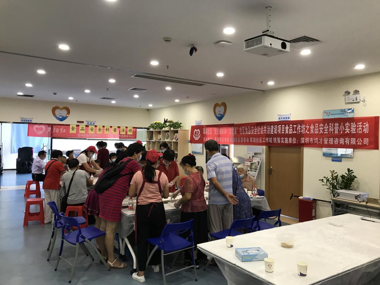 近日,由龙岗区社区“民生微实事·大盆菜”项目专项经费资助的食品安全科普小实验活动来到了翠湖社区,30名辖区居民参加该活动。