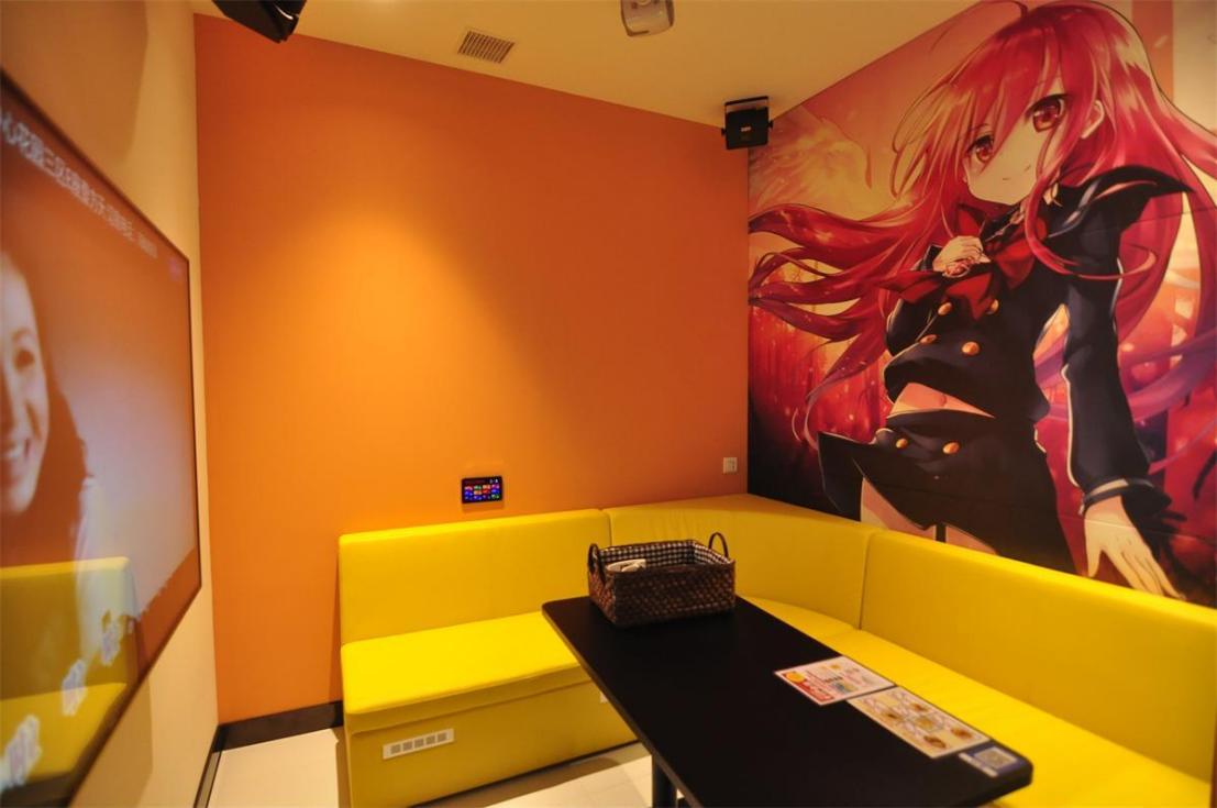 KARAOKE区域,卡拉OK包厢设有动漫、和风、美式风等不同主题背景,客人可以按照个人喜好或心情选择喜欢的房间。不同包厢有着风格各异的投影和舞台,这里也可以举办生日会和公司社员团建活动。饮食区提供的披萨、热狗、意大利面等小食和饮料都可以带进包厢,让边吃着美食边举行派对成为现实。