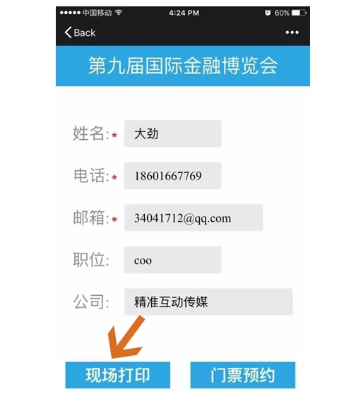 4、提示【输入打印码】是在现场门票终端取票时使用。
