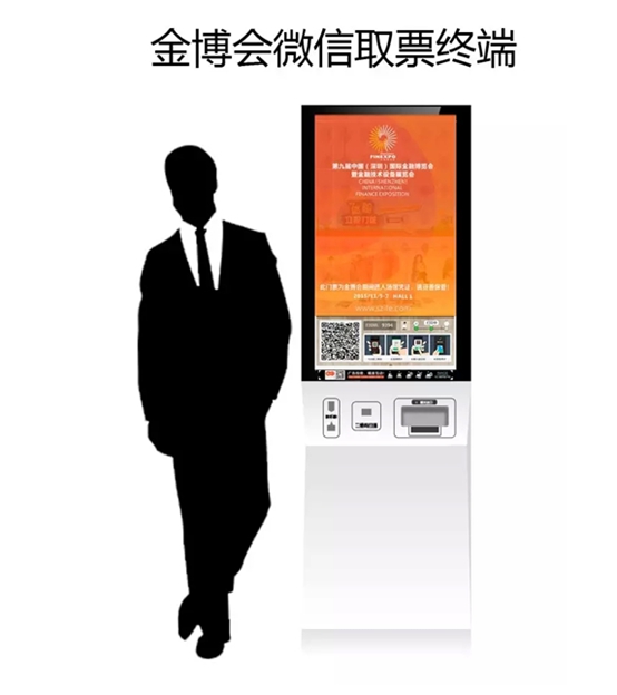 本次金博会将采用自助微信取票终端方式获取门票入场,展会现场【微信取票终端】免费自助打印个性化门票,请关注下图中取票终端设备:
