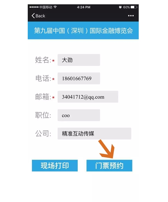2、如实填写相关参展信息,点击【门票预约】提交。