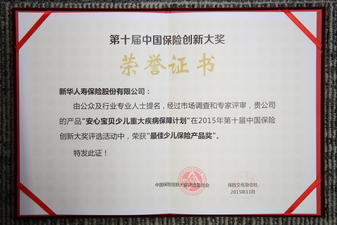 2015年最佳少儿保险产品奖