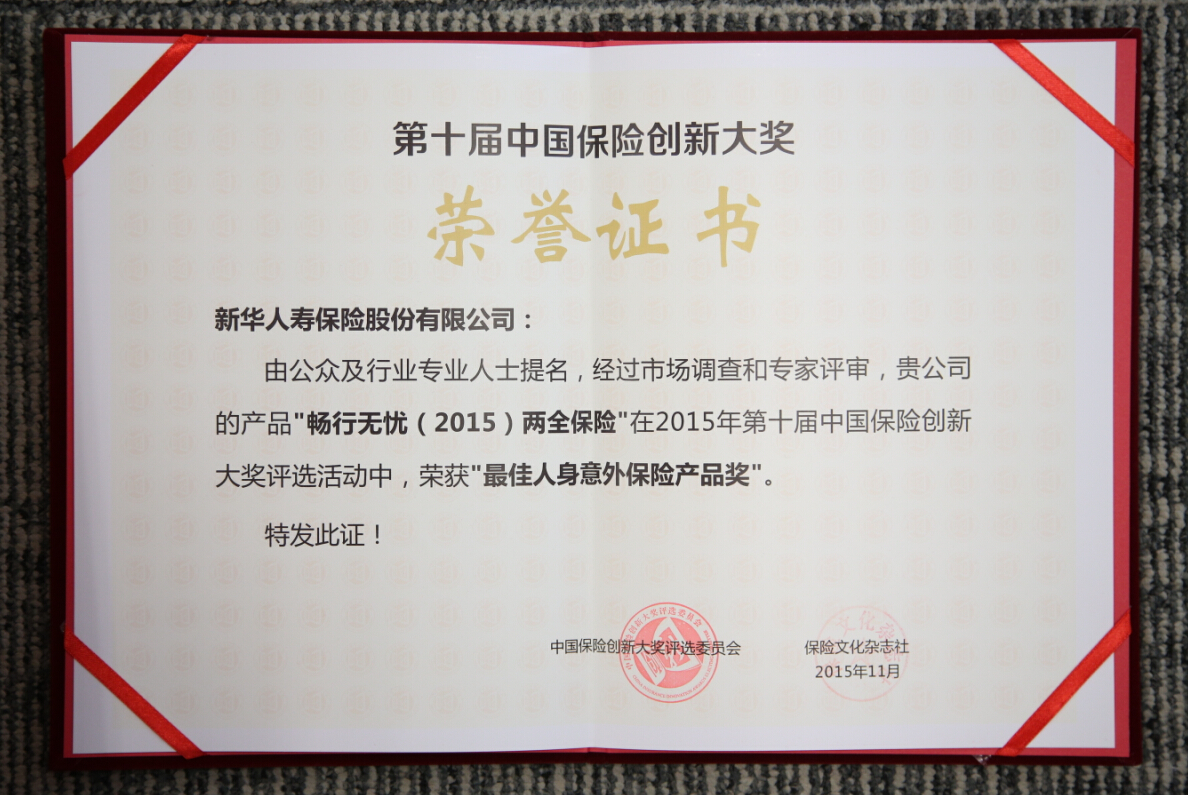 2015年最佳人身意外保险产品奖