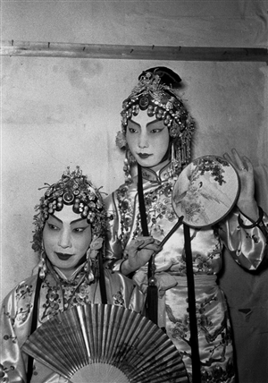 他10岁学艺,13岁正式登台演出《玉堂春》、《四郎探母》等剧目,彼时的中国正值抗战的危难时期,风雨飘摇,他的父亲为彰显民族气节,正蓄须明志,暂别舞台。我们在流传下来的文献照片中,只能看见一个面容清秀的少年,安静地立于他名声浩荡的父亲的身后,身体微微前倾——除此之外,我们没法更多地捕捉到这对父子之间情感上的细节,那黑白的画面,静穆而有意地拒绝向后人传递出更多的信息。