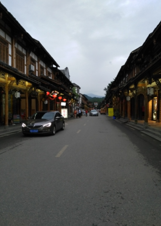 虽然商铺林立,但是傍晚时分街上的人并不多,虽然与长沙的太平街同为石转路,但是街子古镇的石砖不像太平街的那样被磨得光滑。