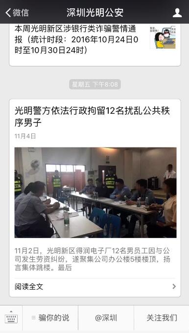 光明新区唯一官方微信入驻@深圳