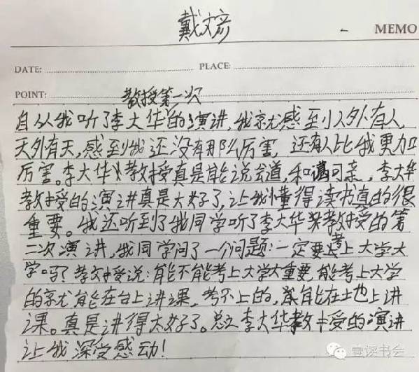多位小朋友对李教授讲座的评价。