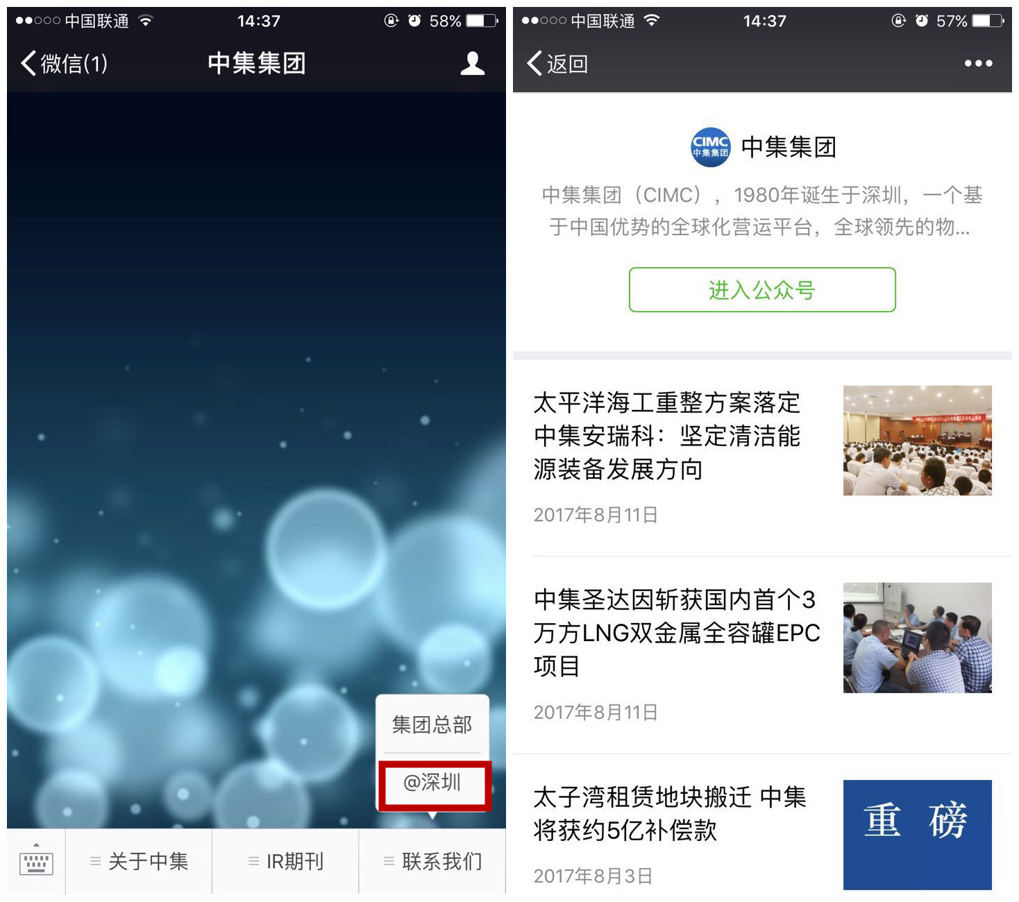 深圳新闻网讯(记者 陈飞)近日,中国国际海运集装箱(集团)股份有限公司(简称:中集集团)官方微信公众号“中集集团”正式入驻@深圳平台。