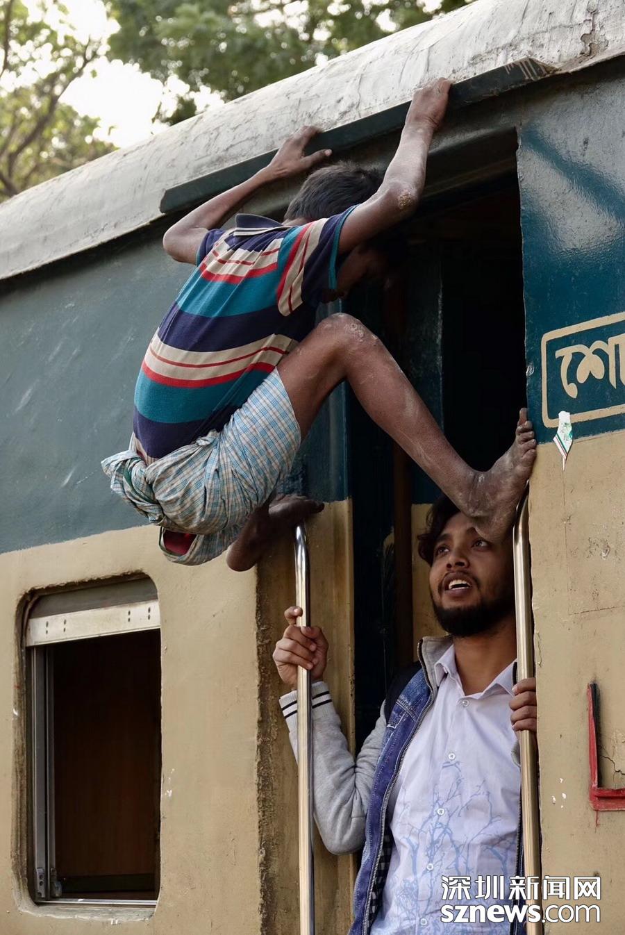 为了能够搭上免费的火车,人们用尽了心思。李仁奇摄