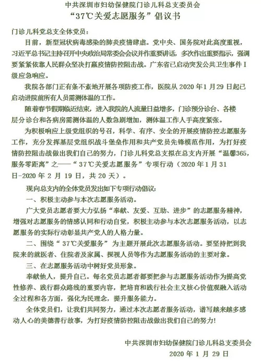 “37℃关爱志愿服务”倡议书