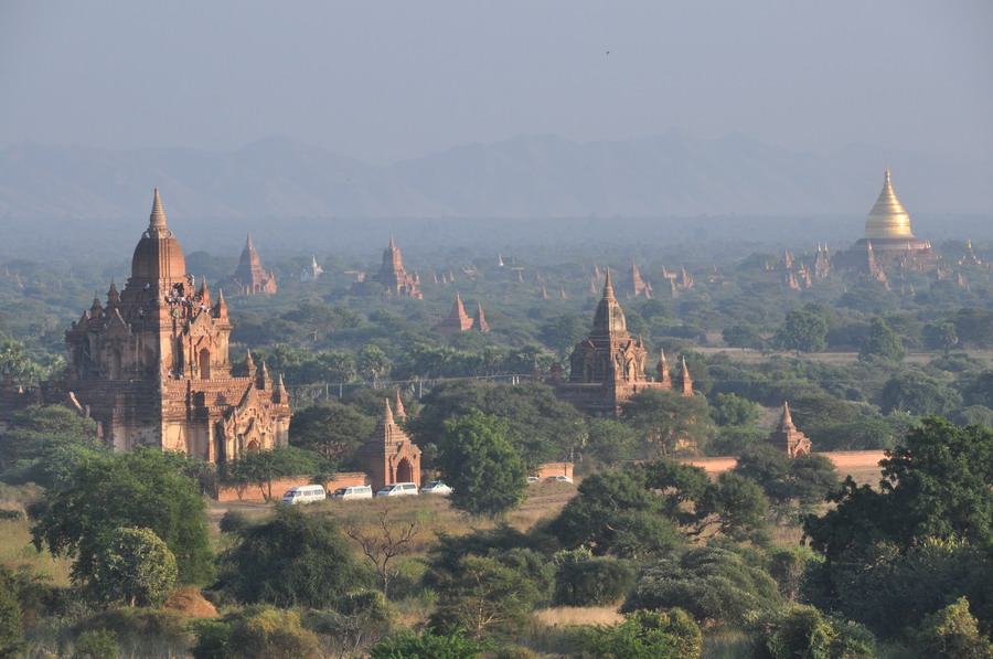 在蒲甘游览,见不到想象中的古城和街道,原来整个塔林散布的40平方公里范围内都是“古城”,城里没有一座超过三层的楼房,映入眼帘的都是星罗棋布的古塔。李仁奇摄
