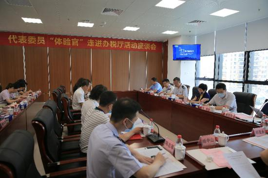 深圳市税务局积极搭建与人大代表、政协委员的沟通桥梁,图为代表委员“体验官”走进办税厅座谈会现场。