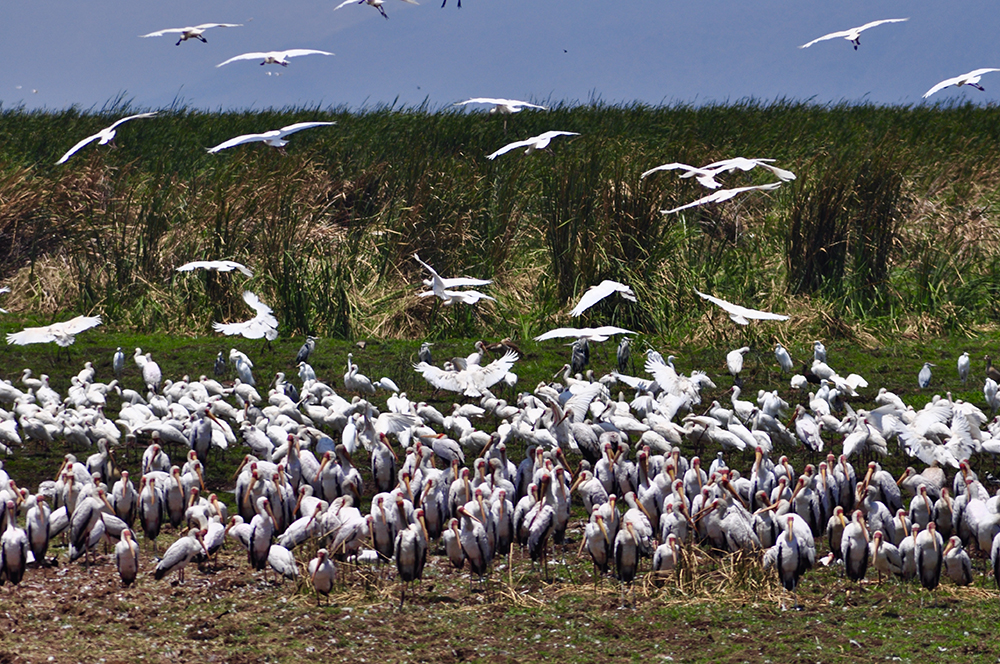 有食盐、天然碱、鸟粪层等资源。游览胜地,有"飞禽乐园"之称。每年一定时期,红鹤云集湖区,绵延数公里,十分鲜艳。还有野牛、狮、象、长颈鹿、猴等动物。1960年辟为野生动物园。李仁奇 摄