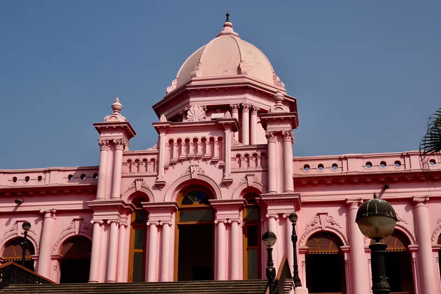 这座通体粉赤色的宫廷是游客打卡的地标之一。李仁奇 摄