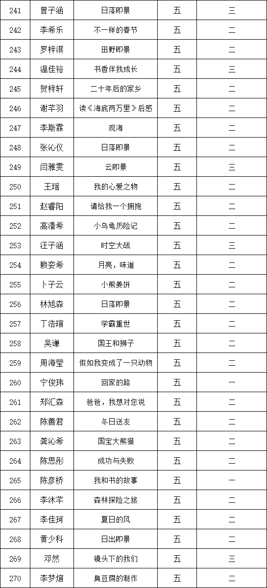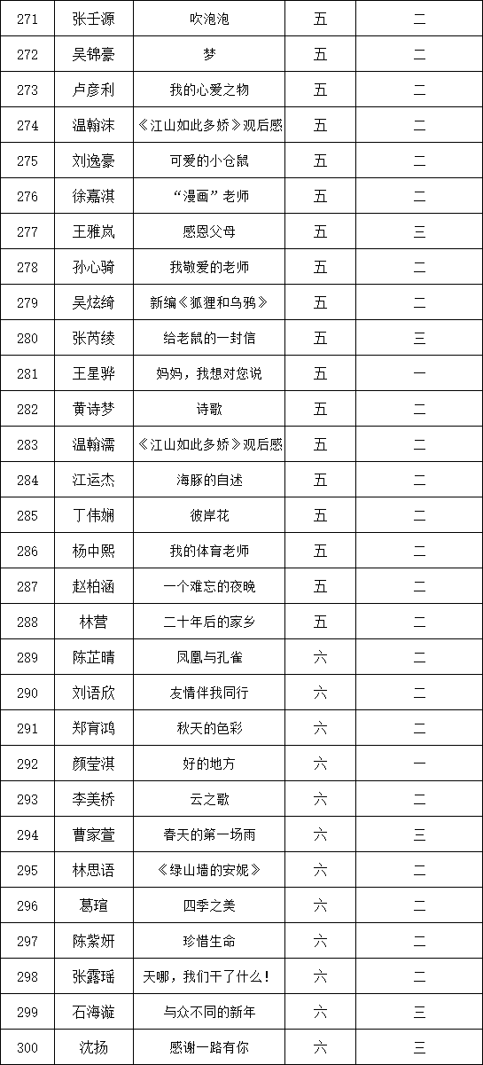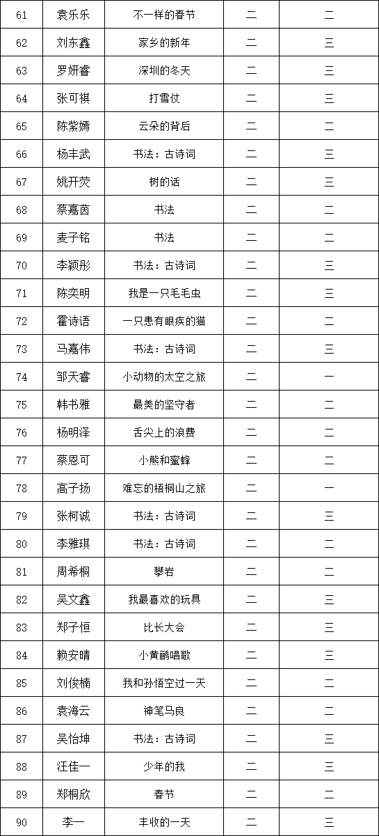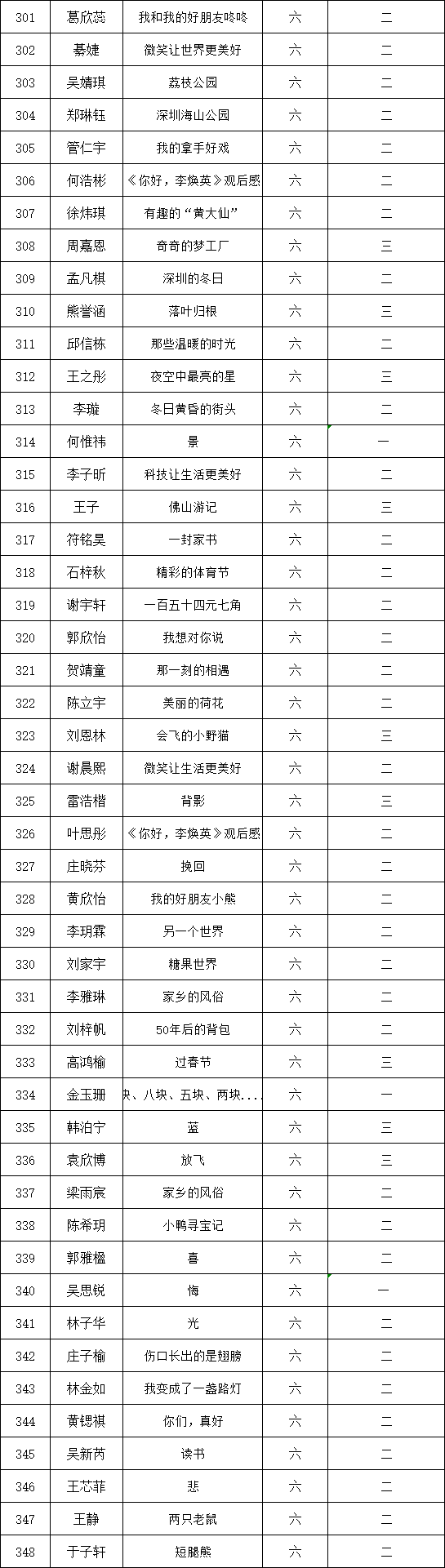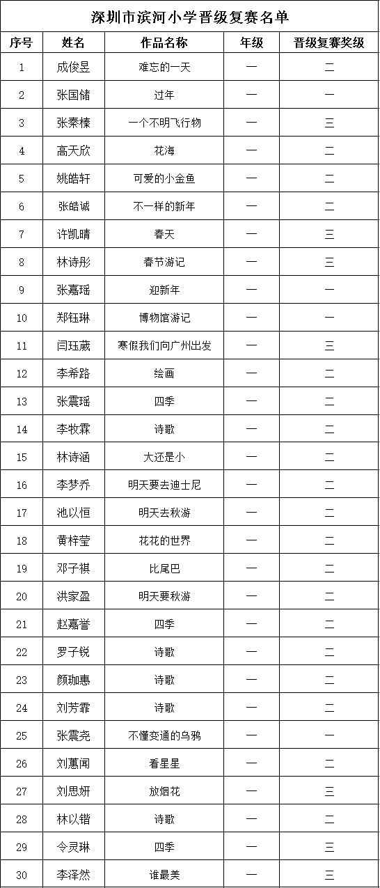 自2021年1月,活动征稿启动以来,获得了深圳市广大中小学生、教师、文学爱好者的热烈响应积极参与,吸引了深圳百余所学校的上万人关注报名。现公布深圳市滨河小学校园专场晋级复赛名单如下: