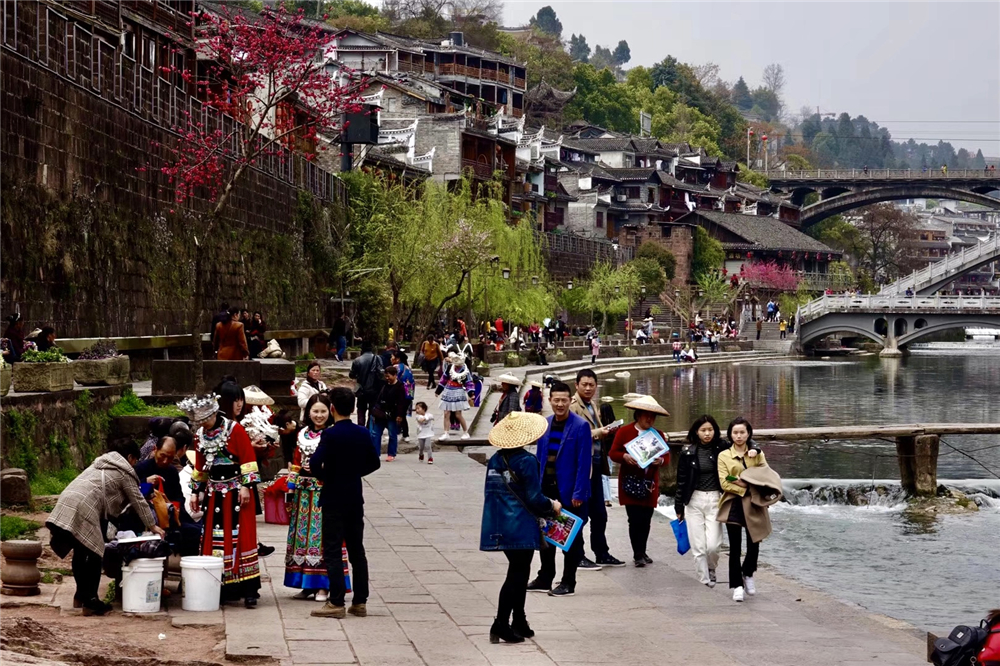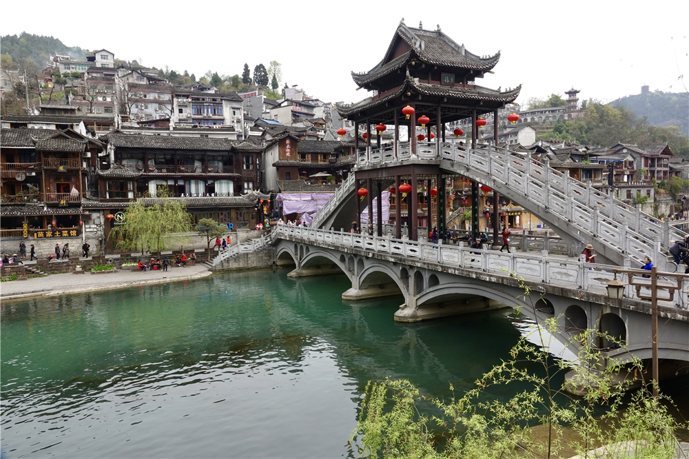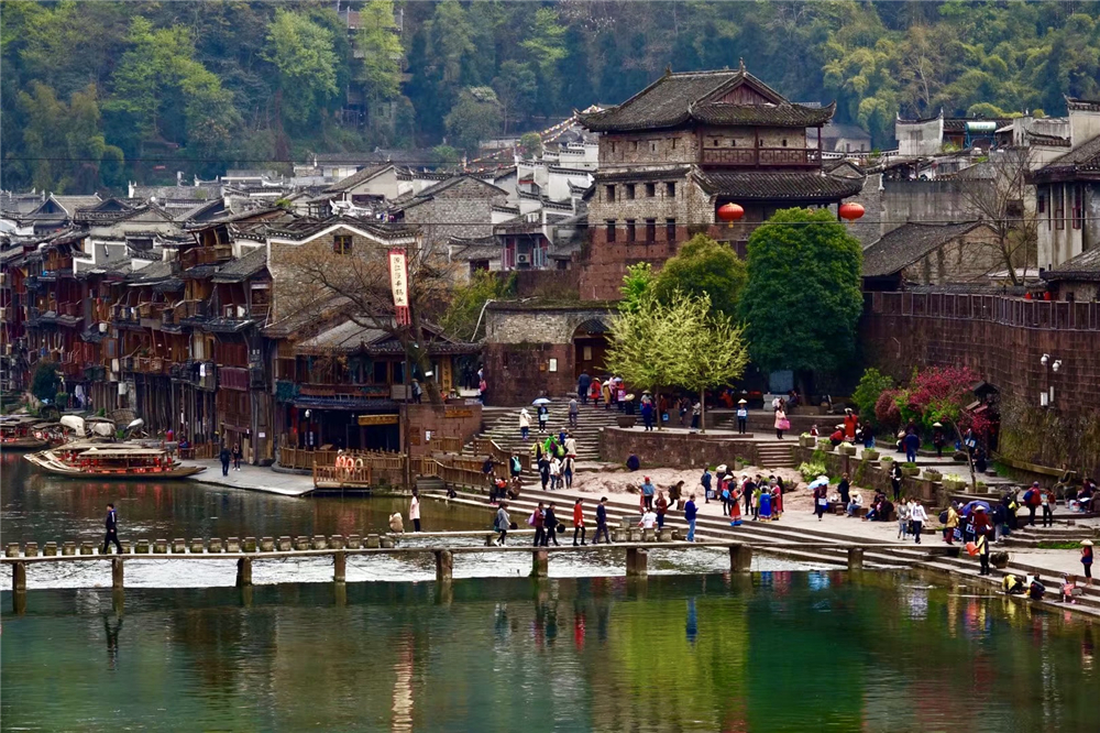 山水环绕的凤凰古城景色优美,古风盎然。李仁奇 摄