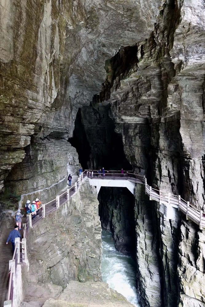 神奇的是,水旱两洞基本平行,仅一壁之隔。据地质学家考证,旱洞曾经是清江古河道。李仁奇 摄