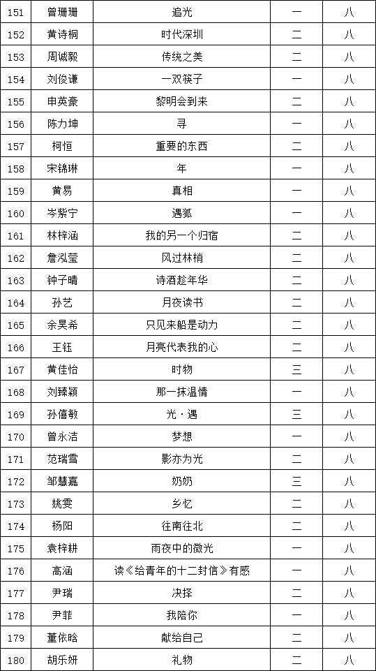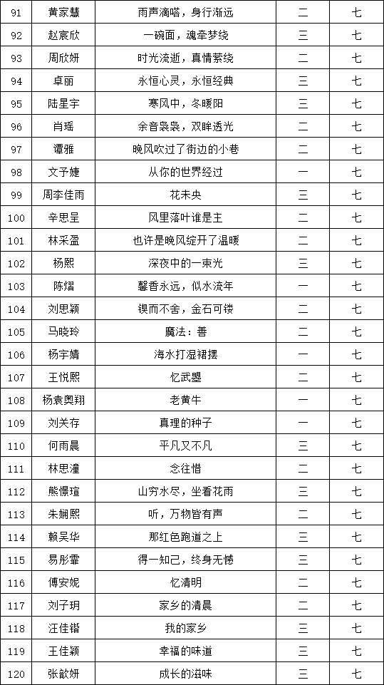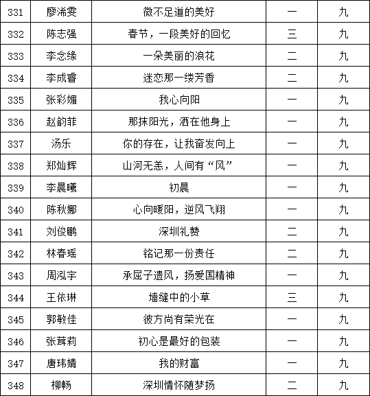 自2021年1月,活动征稿启动以来,获得了深圳市广大中小学生、教师、文学爱好者的热烈响应积极参与,吸引了深圳百余所学校的上万人关注报名。现公布福永中学晋级复赛名单如下: