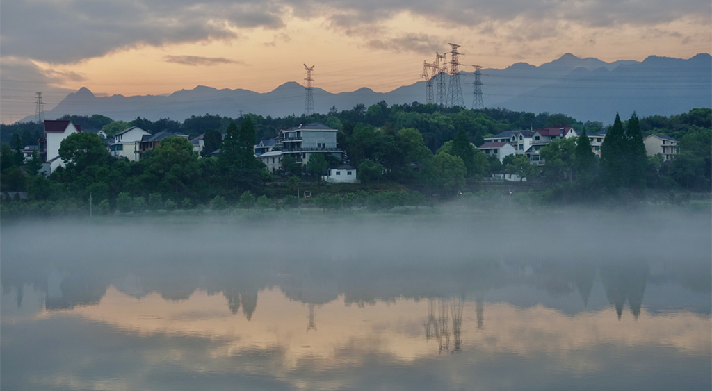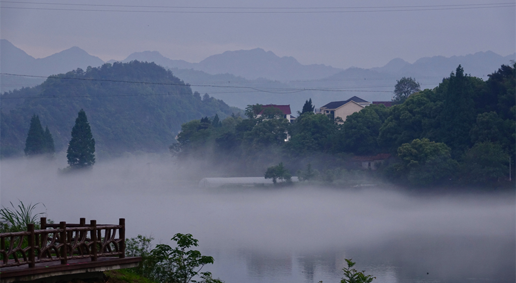 烟雾缭绕,江边的庭院若隐若现。李仁奇 摄