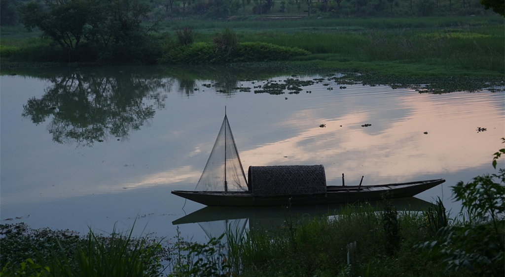 停泊在江边的小渔船。李仁奇 摄