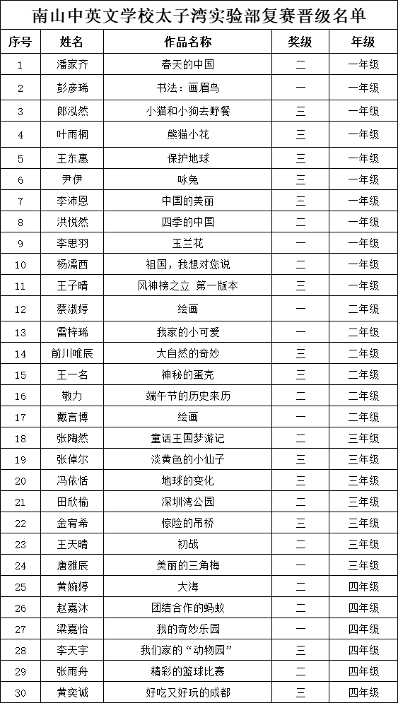 自2021年1月,活动征稿启动以来,获得了深圳市广大中小学生、教师、文学爱好者的热烈响应积极参与,吸引了深圳百余所学校的上万人关注报名。现公布南山中英文学校太子湾实验部晋级复赛名单如下: