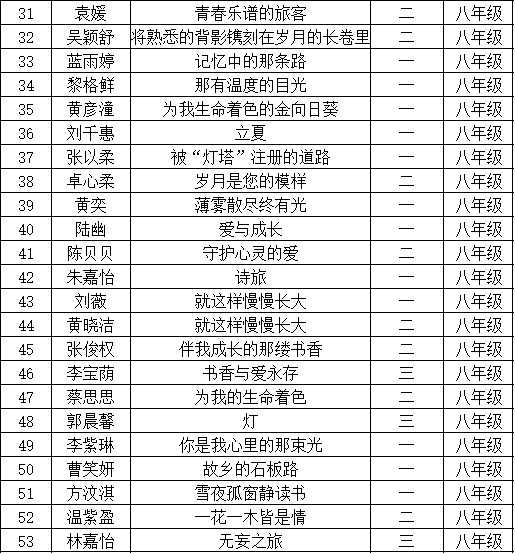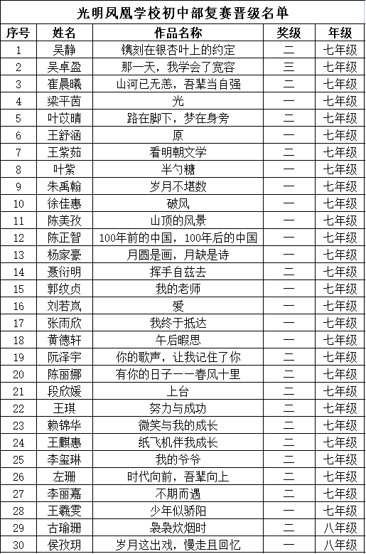 自2021年1月,活动征稿启动以来,获得了深圳市广大中小学生、教师、文学爱好者的热烈响应积极参与,吸引了深圳百余所学校的上万人关注报名。现公布光明区凤凰学校晋级复赛名单如下: