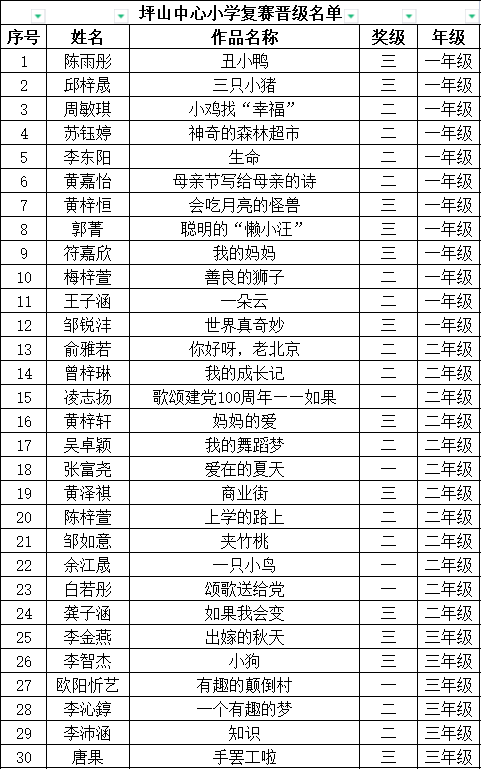 自2021年1月,活动征稿启动以来,获得了深圳市广大中小学生、教师、文学爱好者的热烈响应积极参与,吸引了深圳百余所学校的上万人关注报名。现公布坪山区坪山中心小学晋级复赛名单如下: