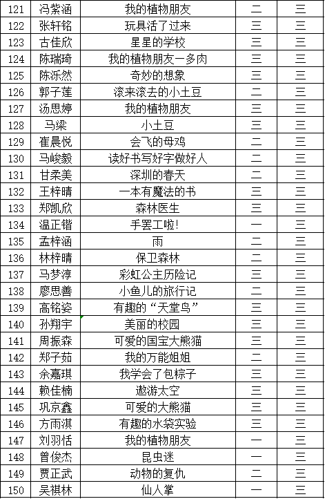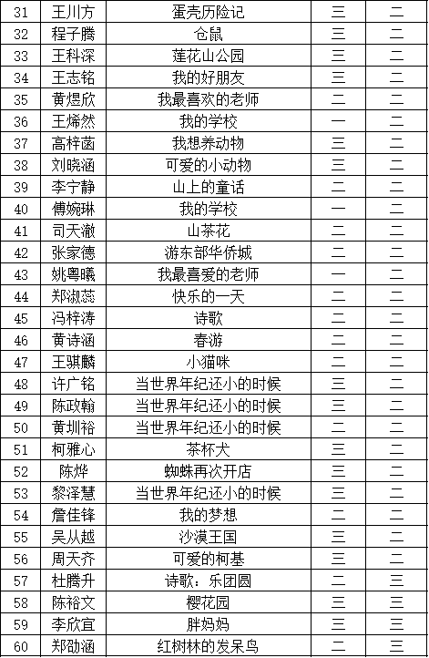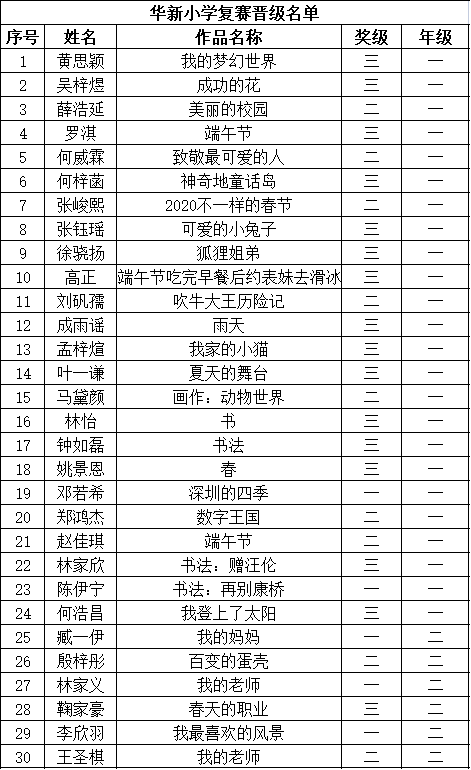 自2021年1月,活动征稿启动以来,获得了深圳市广大中小学生、教师、文学爱好者的热烈响应积极参与,吸引了深圳百余所学校的上万人关注报名。现公布福田区华新小学晋级复赛名单如下: