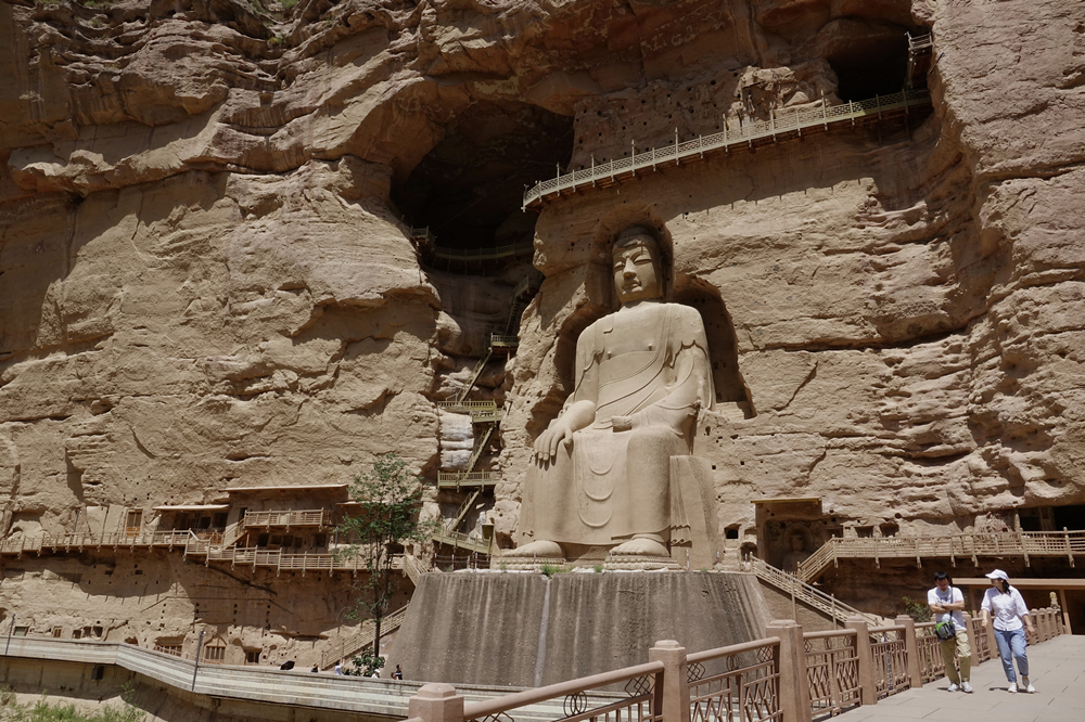 这是炳灵寺石窟最大的一尊弥勒佛大坐像,位于石窟悬崖上,唐代石胎泥塑。依山雕凿,高达27米,雄浑庄严。李仁奇 摄