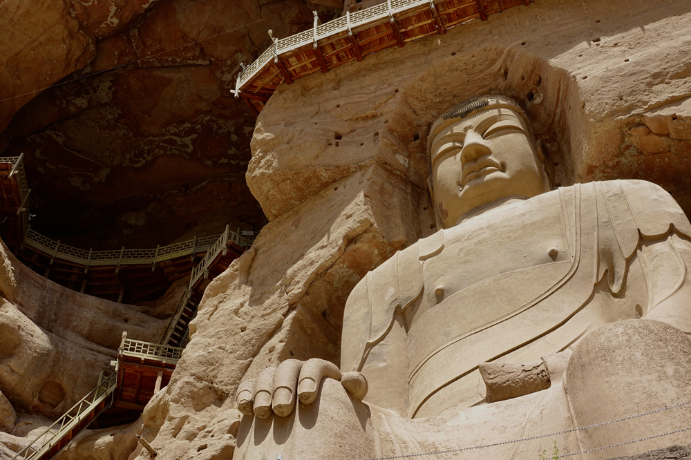 佛像左上方为169窟,169窟为一天然大洞穴,是现存最重要石窟,窟内存西秦时的造像和壁画。李仁奇 摄