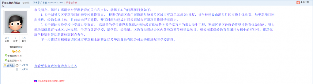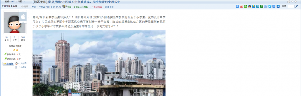 4、帖文《湖贝/螺岭片区新初中何时建成?无中学谈何安居乐业》
