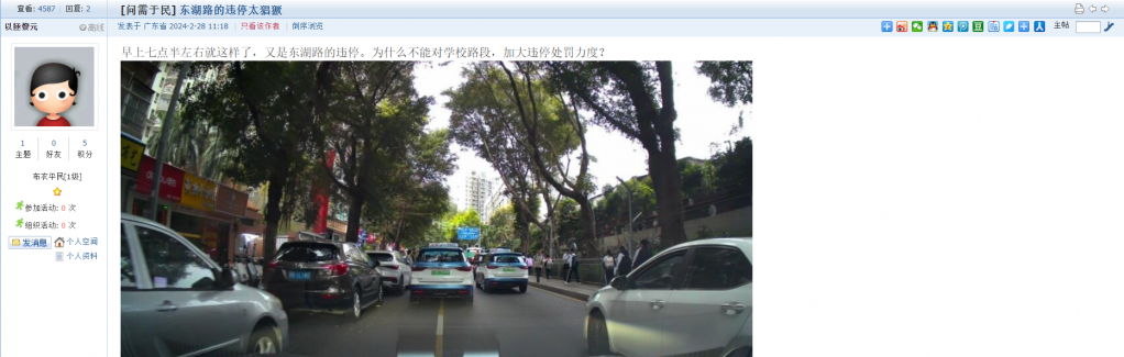 3、帖文《东湖路的违停太猖獗》