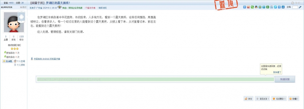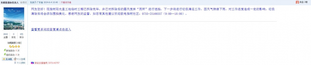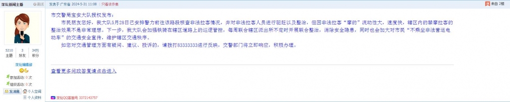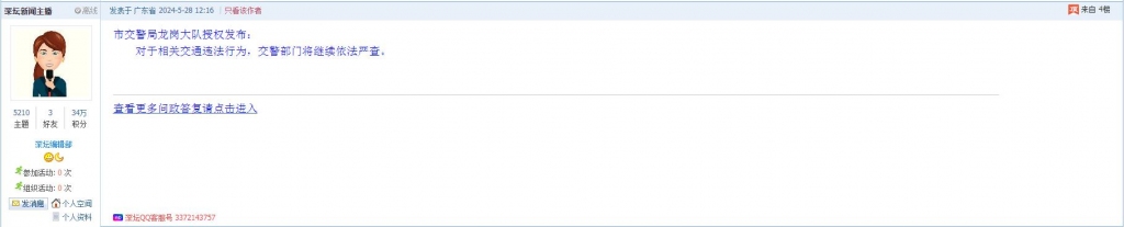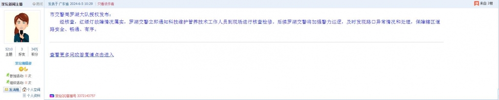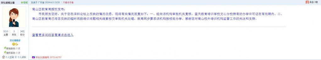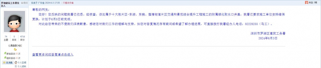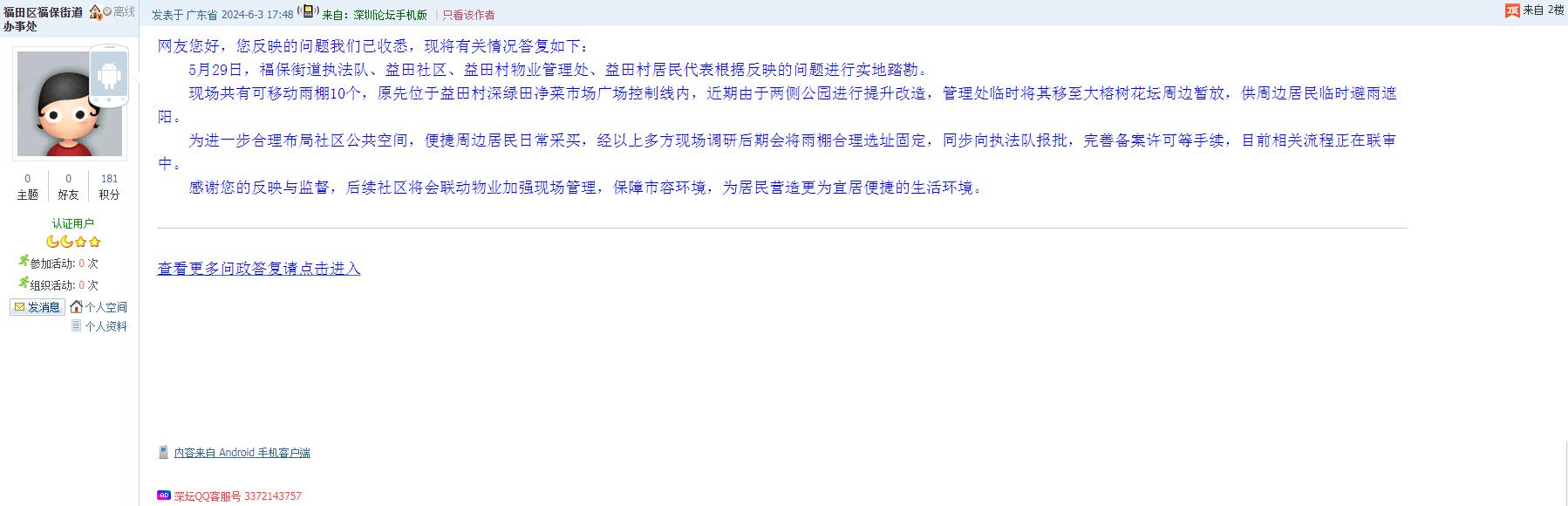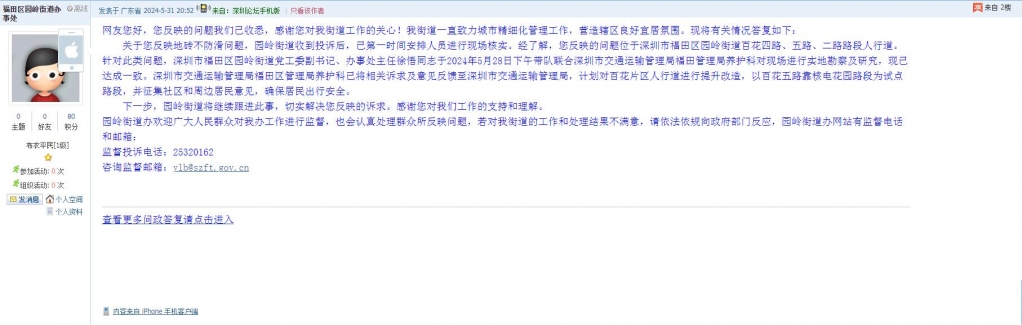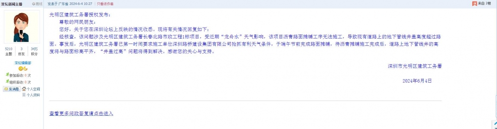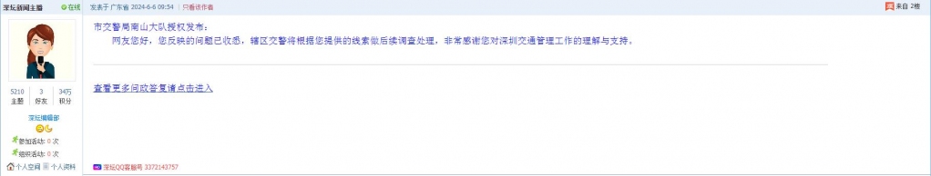 各职能单位如需对网友反映的问题进行回应,可在深圳论坛注册官方账号并通过认证,回帖进行回应。