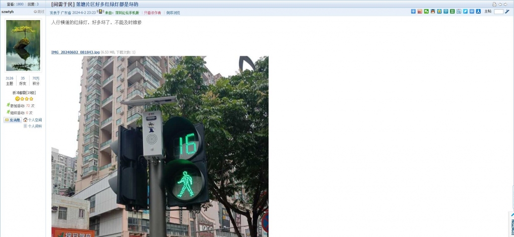 13、帖文《莲塘片区好多红绿灯都是坏的》