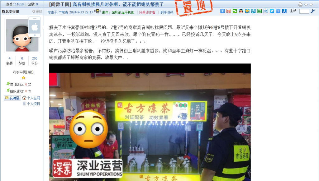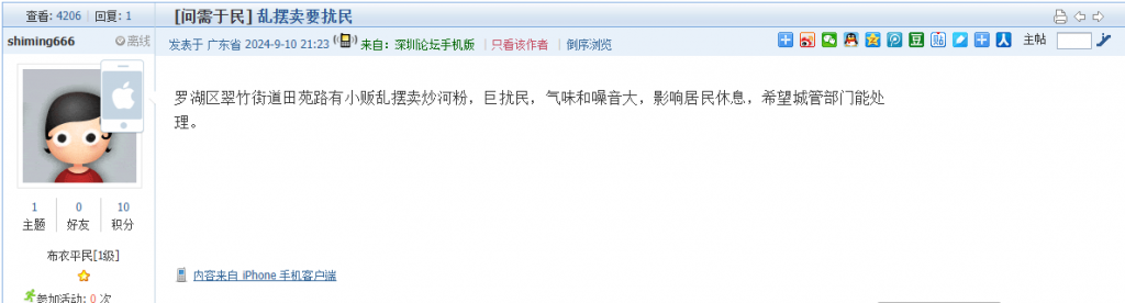 21. 帖文《每晚凌晨罗湖区怡泰大厦附近路边摊扰民》