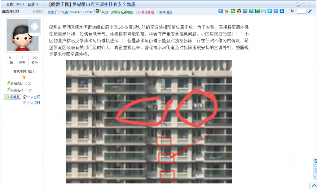 23. 帖文《罗湖缙山府空调外挂有安全隐患》