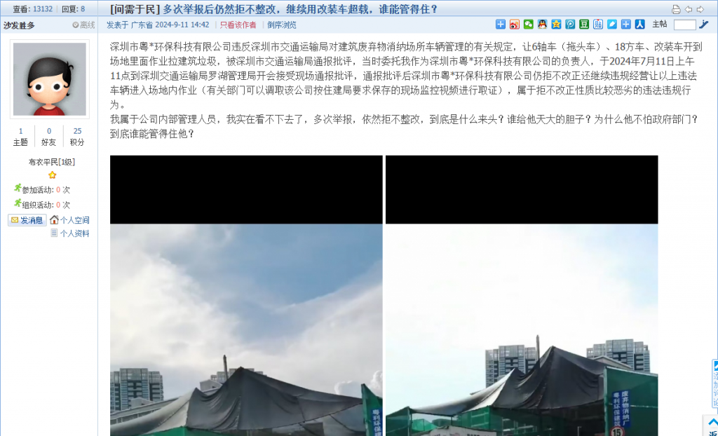 网友如有相关诉求、建言和意见的,可直接在深圳论坛“我说深圳事”栏目发帖进行报料、投诉,或者通过官方报料QQ以及问政热线等渠道反映诉求。