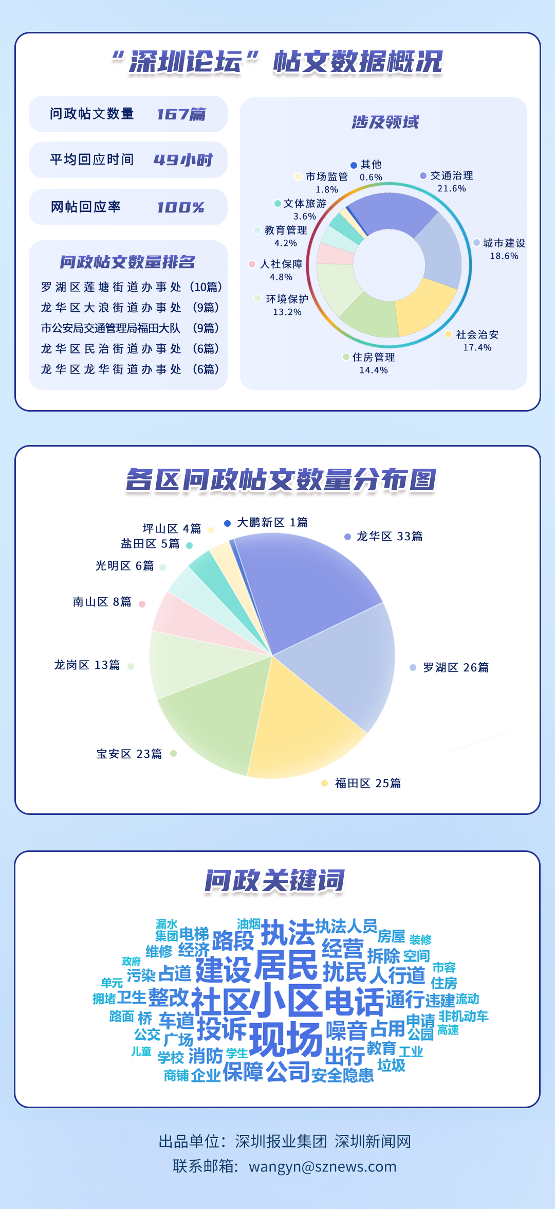 本期“问政深圳红黑榜”根据所涉话题的关注度、影响力以及好评度,选择优秀案例、待提升案例各3篇,就相关单位的工作表现予以点评,回应存在不足之处的,给出优化建议