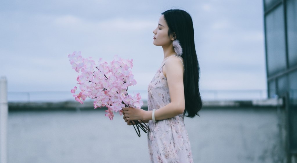 手捧鲜花的少女