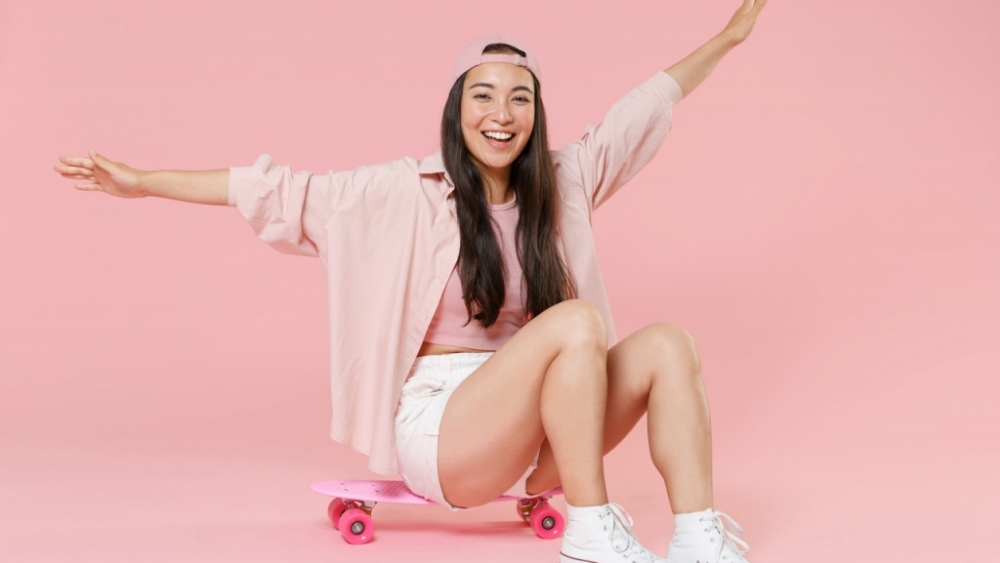 自信满满滑板少女