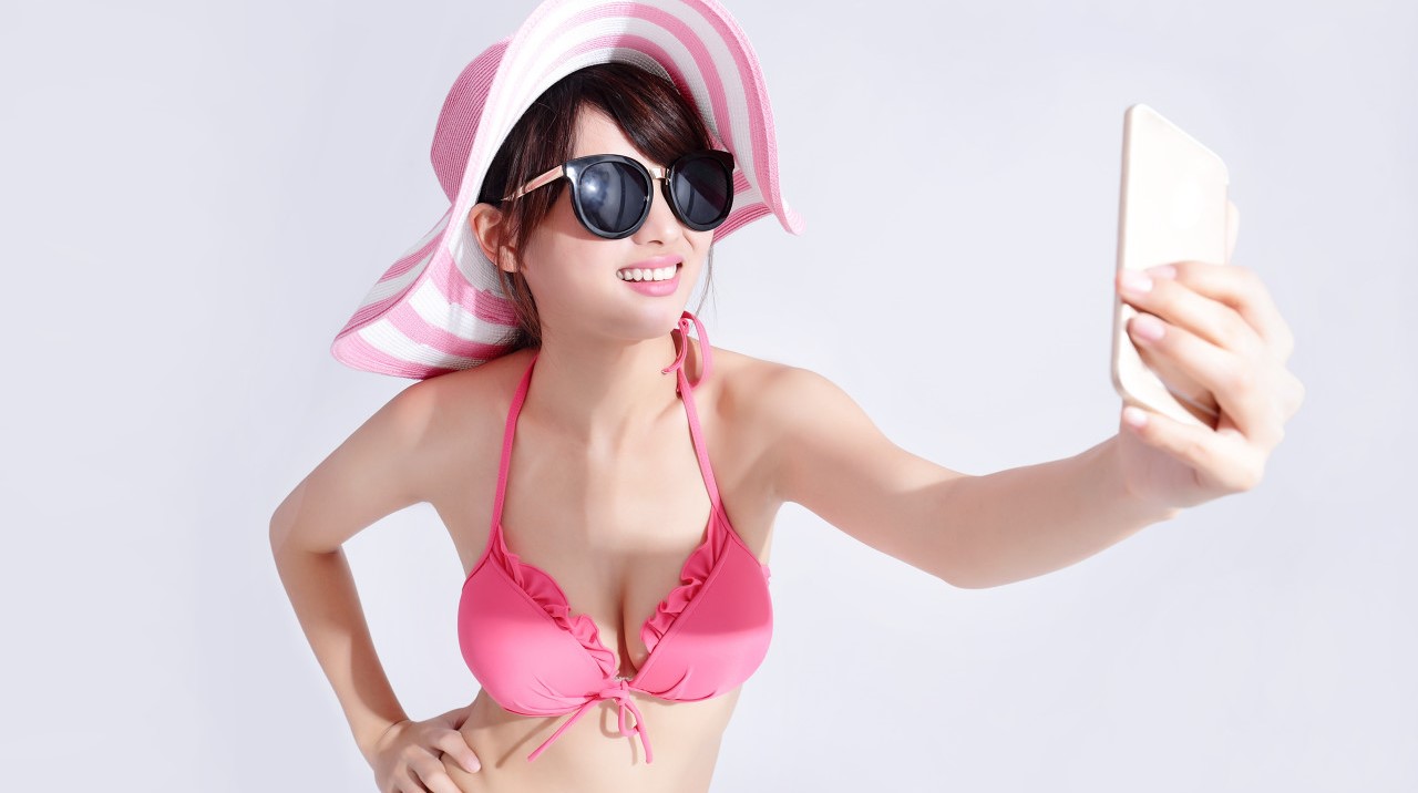 美女海边沐春光