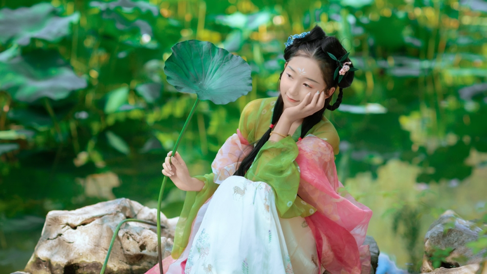 绿意中的少女:荷花与夏日的约定