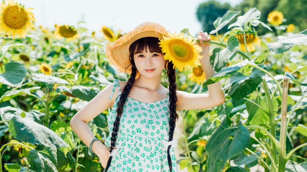 向日葵田里的麻花辫少女