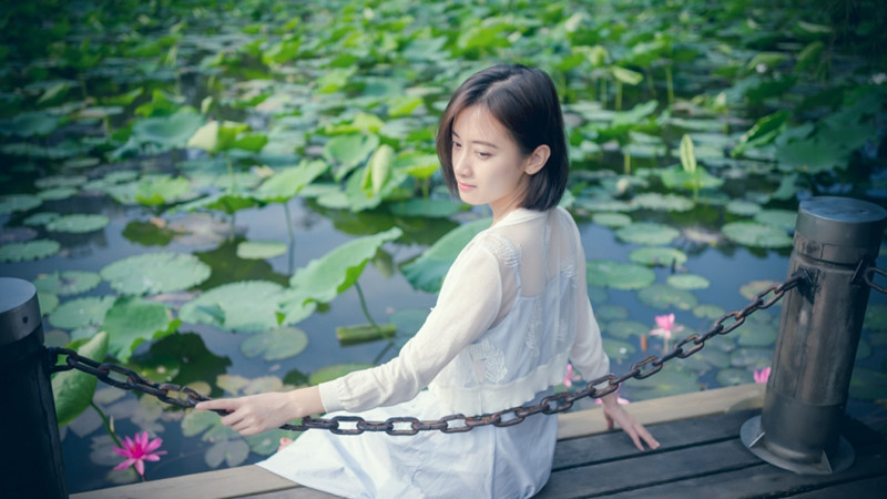 莲花池边的清秀佳人