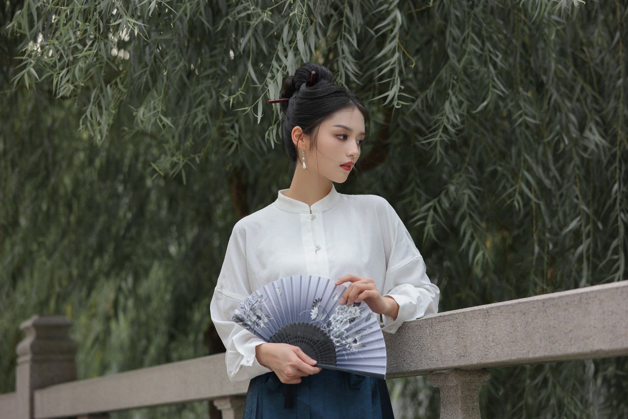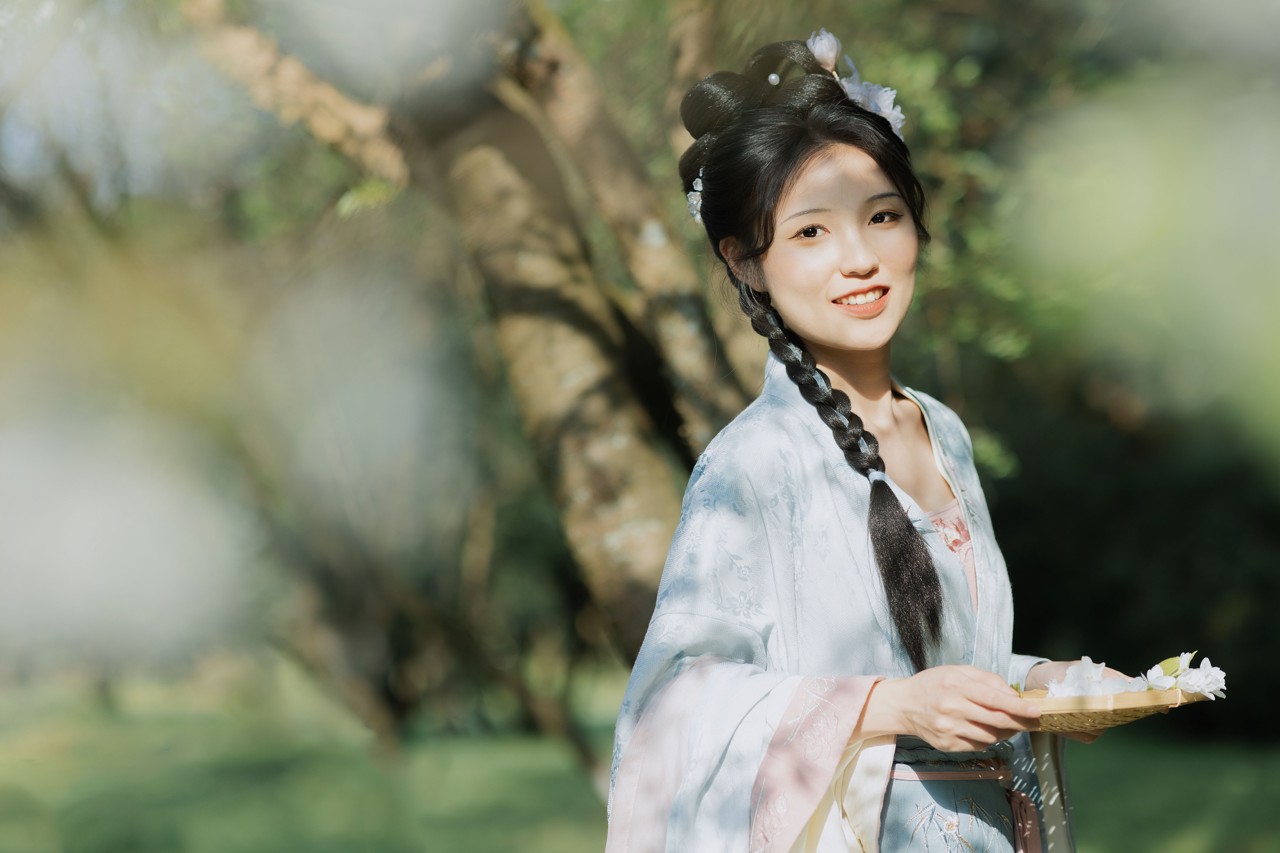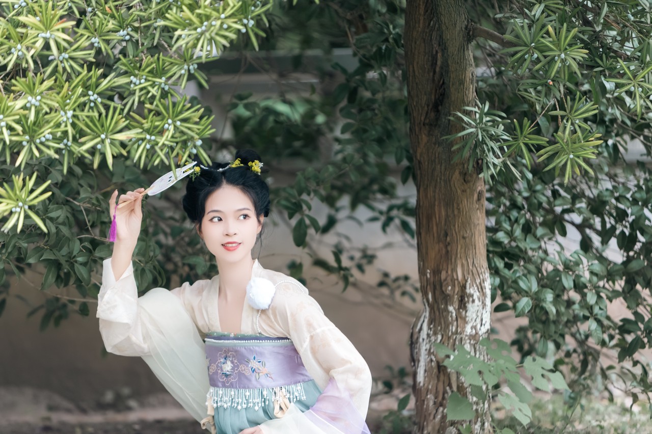 花荫下的汉服姑娘